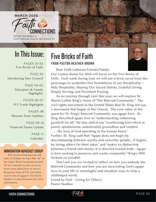 Every month our Faith Connection Newsletter comes out, highlighting our mission team activity and announcing events to come! Hear from our Pastor with an update or inspirational letter. For previous months, click on button below. Also don't forget to subscribe to receive the monthly email.